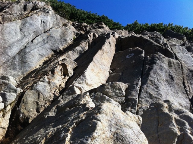 意外に難しいです。岩の上には丸印が書いてありますので道に迷うことはありません。こういった目印がなければ初めての登山者には困難な道のりになってしまうでしょう。