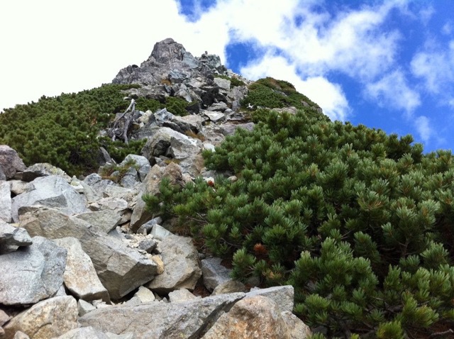 この岩場の直登を終えるとちょっとしたハシゴがありこれを登り終えると涸沢岳が間近に迫って来ます。