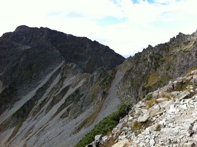 北穂高岳方面に向かいます。ここから奥穂高岳方面に向かうと、先ほどの超難度の稜線を通っていくわけですね。