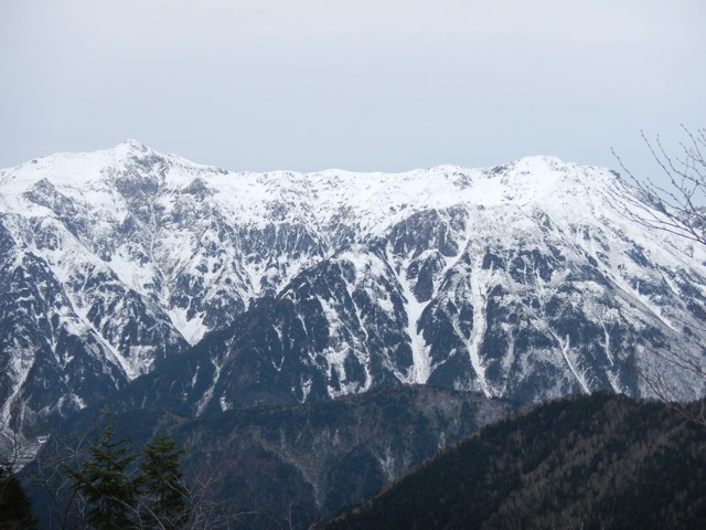 今度は奥の方に前穂高岳が見えてきました。さすがに奥穂や北穂、槍ヶ岳はこの位置からは見えません。