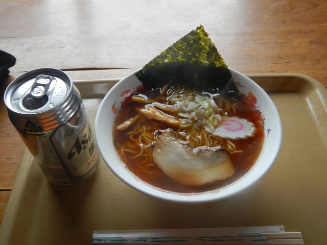 この「西穂ラーメン」は山小屋の中ではとても有名で、インターネットで通販もしているほどです。醤油と豚骨があります。わたしは醤油派なので迷わず醤油ラーメンを注文。ここに来るまでに多量に放出された水分を補給するため、「Asahi生」と書かれた飲み物も一緒に飲みます。
