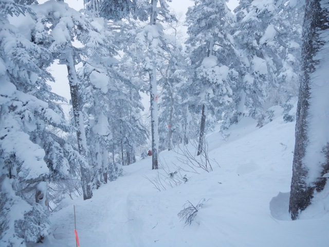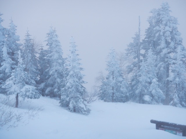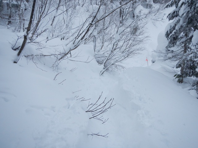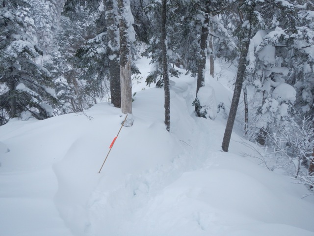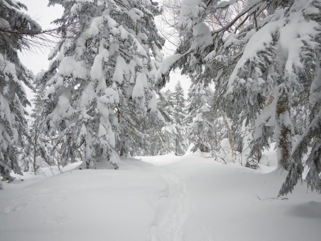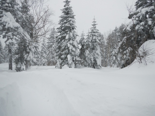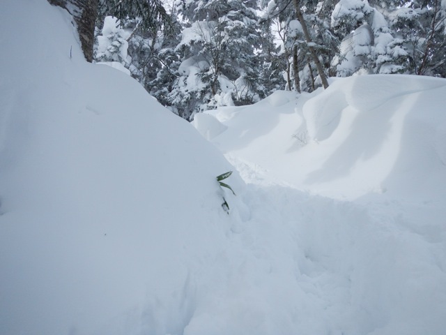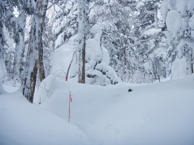 先月はまだ、雪が少なくて岩や笹とかが見えていたのですが、もう全てが雪の下になっています。