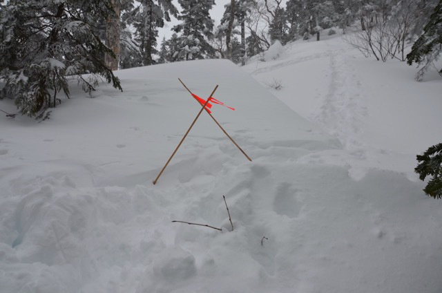 この部分で特に注意すべきなのは雪崩の発生です。もちろん凍結や降雪直後のラッセルにも注意するべきことは言うまでもありませんが。