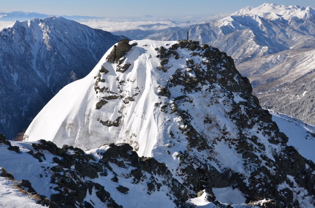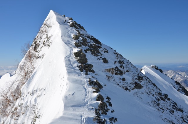 また、峰の上を通る積雪期は信州側に雪庇がはり出すのでなるべく飛騨側を歩くように心がけないといけません。
