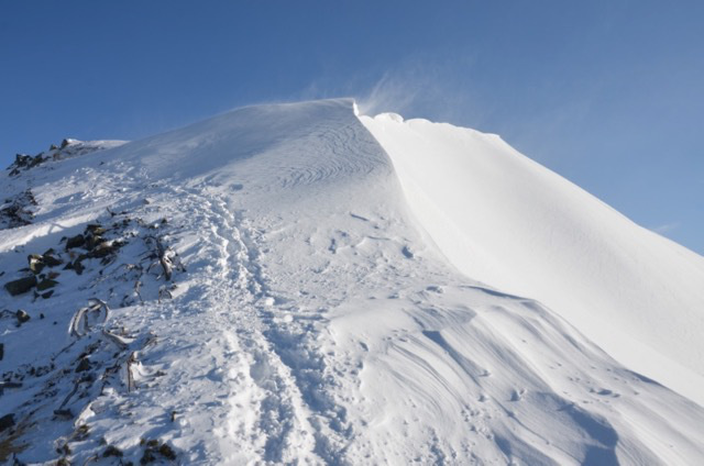 第10峰と第9峰の間の尾根は毎年雪庇が張り出しますので踏み抜きに注意が必要です。
